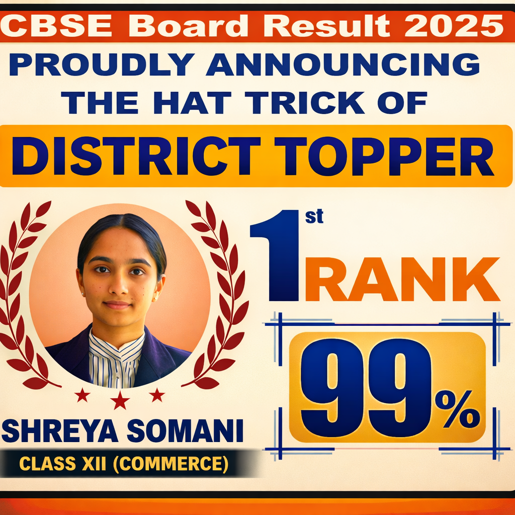 .The school endeavours to motivate learners to be creative in their responses, adopt a positive approach, to explore and innovate, thereby upholding the thrust for knowledge. we have the legacy to produce district toppers in cbse board exam. We created wonders in 2000 and 2025 cbse board results.